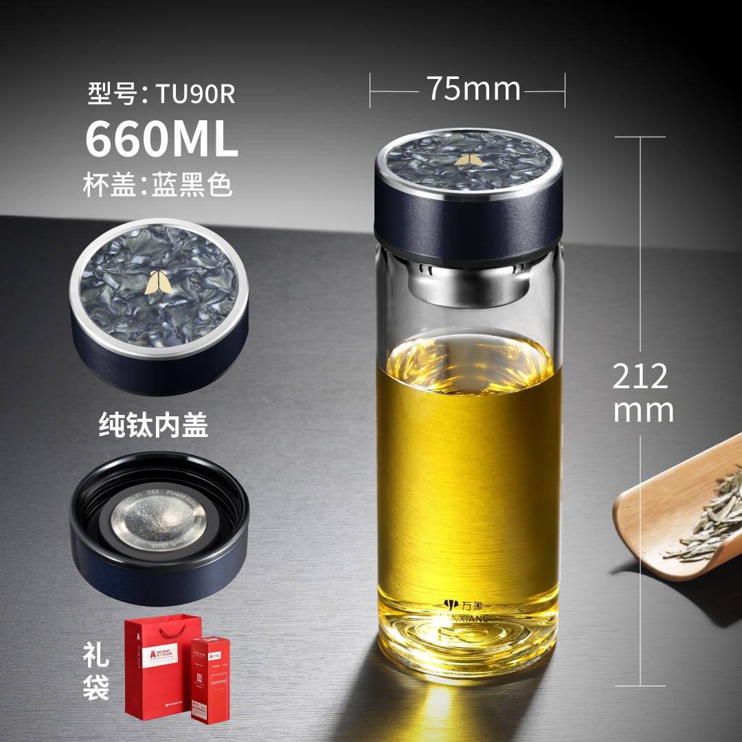 時空知了單層純鈦內蓋玻璃杯 TU89R-藍黑色:¥89 TU90R-藍黑色:¥99